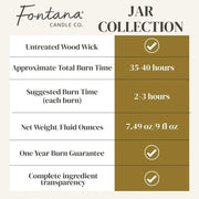 Our candles are made from pure beeswax and coconut oil and scented with essential oils. Fontana also offers complete ingredient transparency, so you know exactly what you are bringing into your home and breathing in! You will not find any artificial ingredients in these candles!