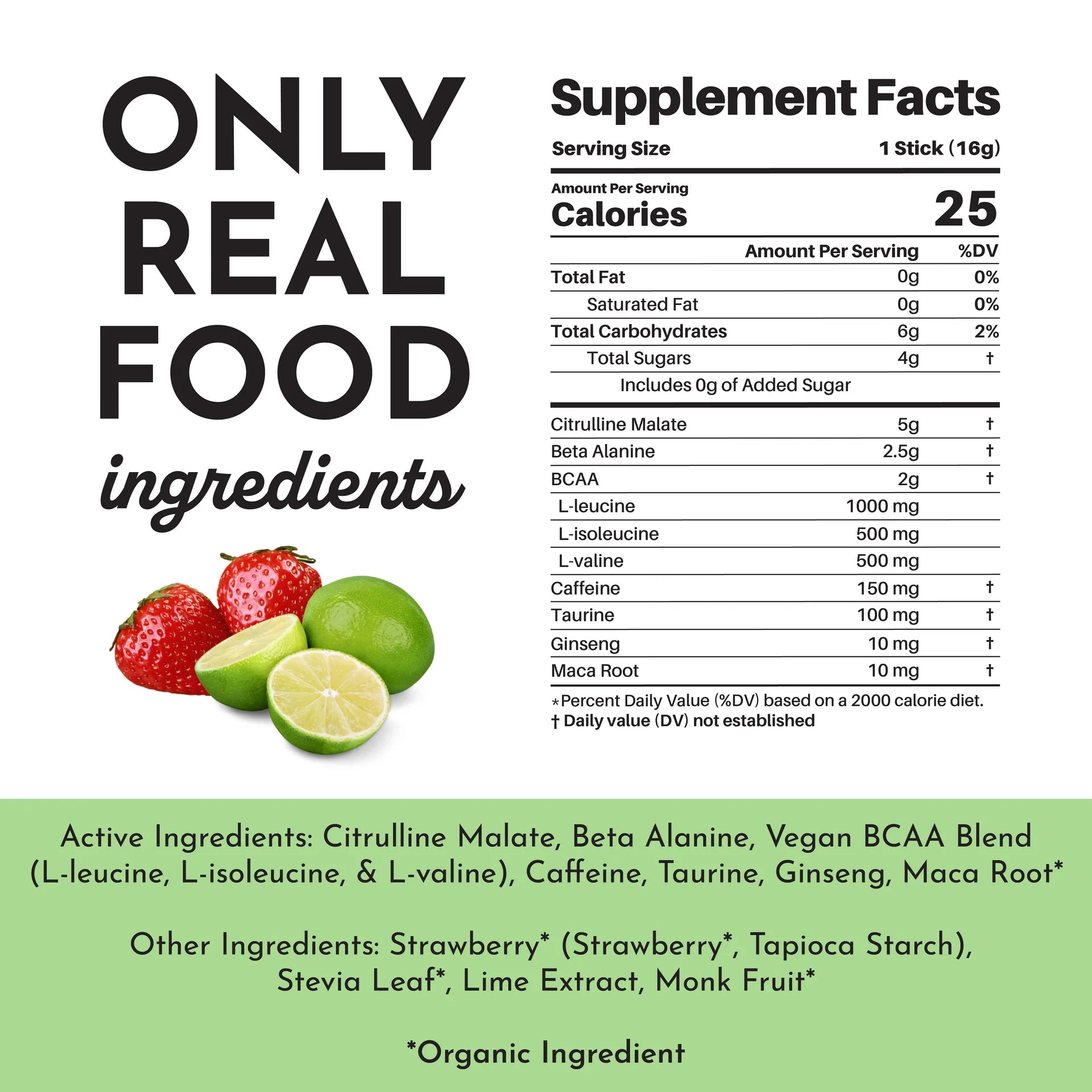 Citrulline Malate, Beta Alanine, Vegan BCAA Blend, Caffeine, Taurine, Ginseng, Maca Root